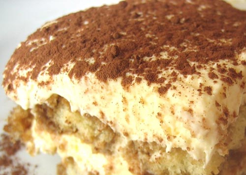 6- Cubrirlos con una capa de la crema de mascarpone, espolvorear con abundante cacao en polvo.