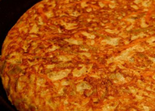 - Calentar una sartén de teflón y agregar la mezcla, cocinar por algunos minutos a fuego medio, voltear la tortilla y continuar la cocción unos minutos más.